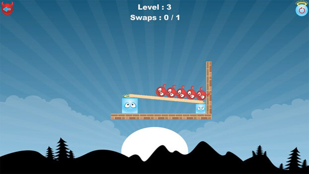 Swap places of two characters by tapping on them. Do it so that all of the evil naughty ones get dropped. Sounds easy? It's not! The shapes, positions and backgrounds keep changing so its never a dull moment!
