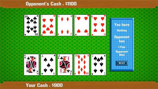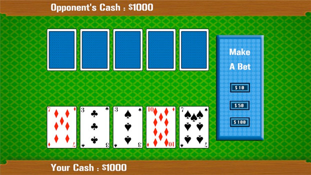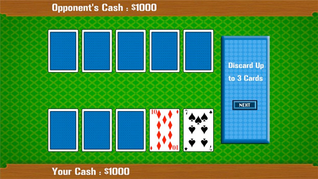 Just Poker is a card game involving betting and individual play, whereby the winner is determined by the ranks and combinations of their cards, some of which remain hidden until the end of the game.